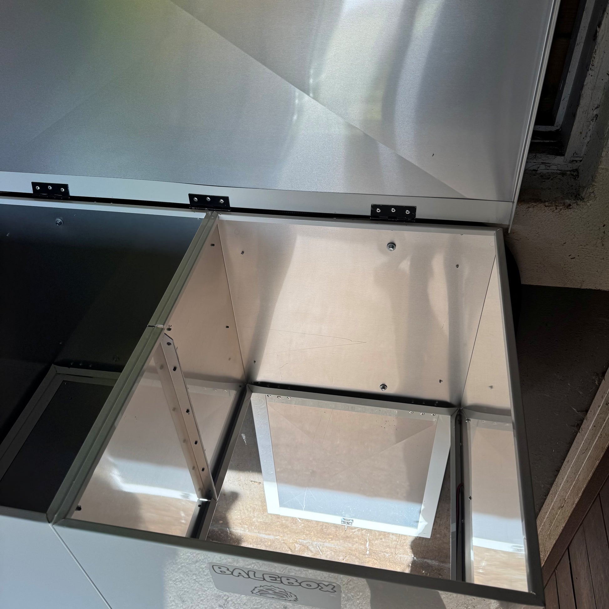 Balebox är byggd i slitstark aluminium och konstruerad för placering både inomhus och utomhus. Konstruktionen är framtagen för att klara tuffa miljöer, daglig belastning och nordiskt klimat.
